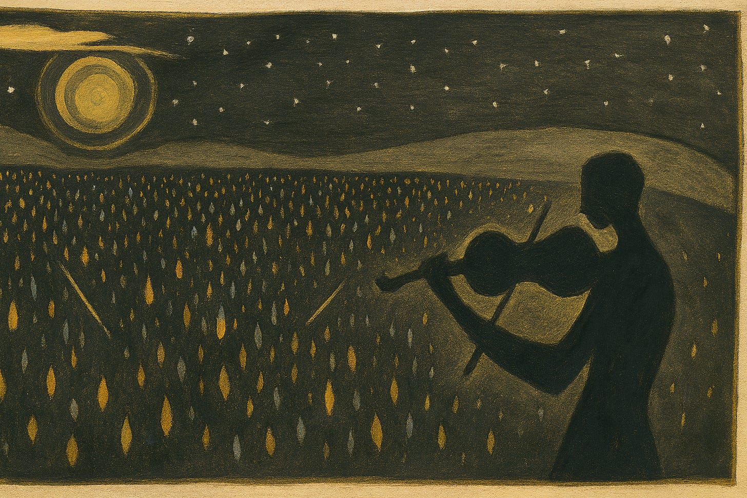 Not the music itself. Not the one there. But something like an outline — a faint afterglow left by the torches.
