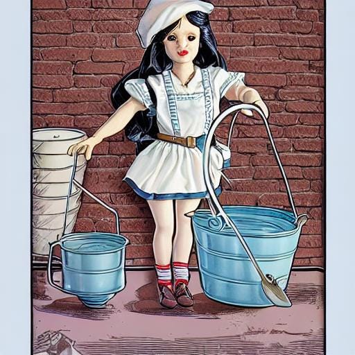 Het was ontzettend intimiderend. Zo erg, dat zelfs de muzikant aan de zijkant een verschrikte kras op zijn viool liet horen. Het melkmeisje raakte in paniek en begon hevig te beven. Over haar eigen voeten struikelend en rammelend met de emmers holde ze verschrikt de zaal uit. De prins bleef ontzet achter.