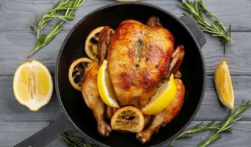 a recipe for roast chicken with lemon, thyme, and garlic butter,